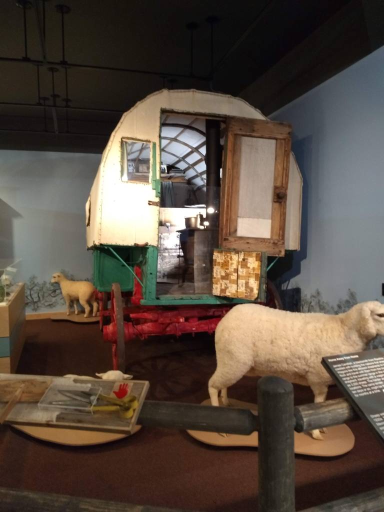 To move along in my Cheyenne description; I should say, we decided to take a rather lengthy walk into town that began uneventfully with a stop at the State Museum to learn about military and mining history in Wyoming. The older lady at the information desk had a dark purple swath of hair mixed in with shades of brown and gray. My first thought; Cheyenne isn’t conservative, but one person’s looks can’t tell the entire tale. In the free museum, I was surprised to see a wagon from some immigrants that arrived ages ago from the Basque country of Spain to hunt for gold and fortune but became sheep farmers instead. I noted this because I love visiting Spain.
